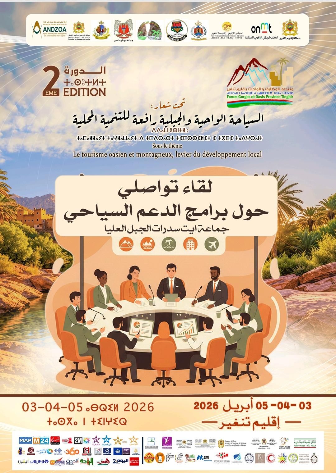 يعود منتدى المضايق والواحات في دورته الثانية ليقدم تجربة متجددة تجمع بين الترويج للمؤهلات الطبيعية والثقافية لإقليم تنغير، وبين خلق دينامية حقيقية حول السياحة الواحية والجبلية، وتشجيع المبادرات الشبابية، وربط الزوار والمشاركين بروح المكان وهويته الفريدة.